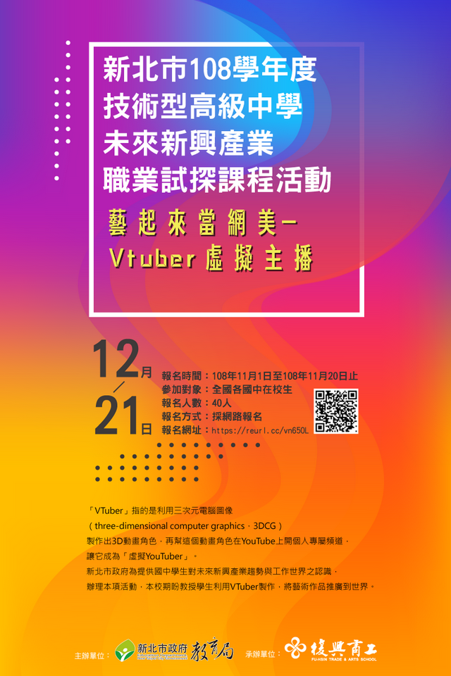 三、參加對象:凡全國各國中在校生,對Vtuber製作有興趣者,皆可報名參加。