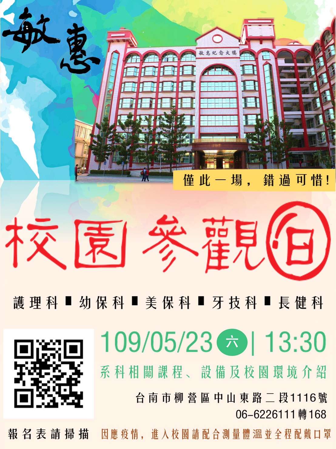 一、敏惠護專為醫護類學校,設有護理、牙體技術(齒模)、美容保健、幼兒保育科與「長期照顧與健康促進管理科」,均男女兼收。