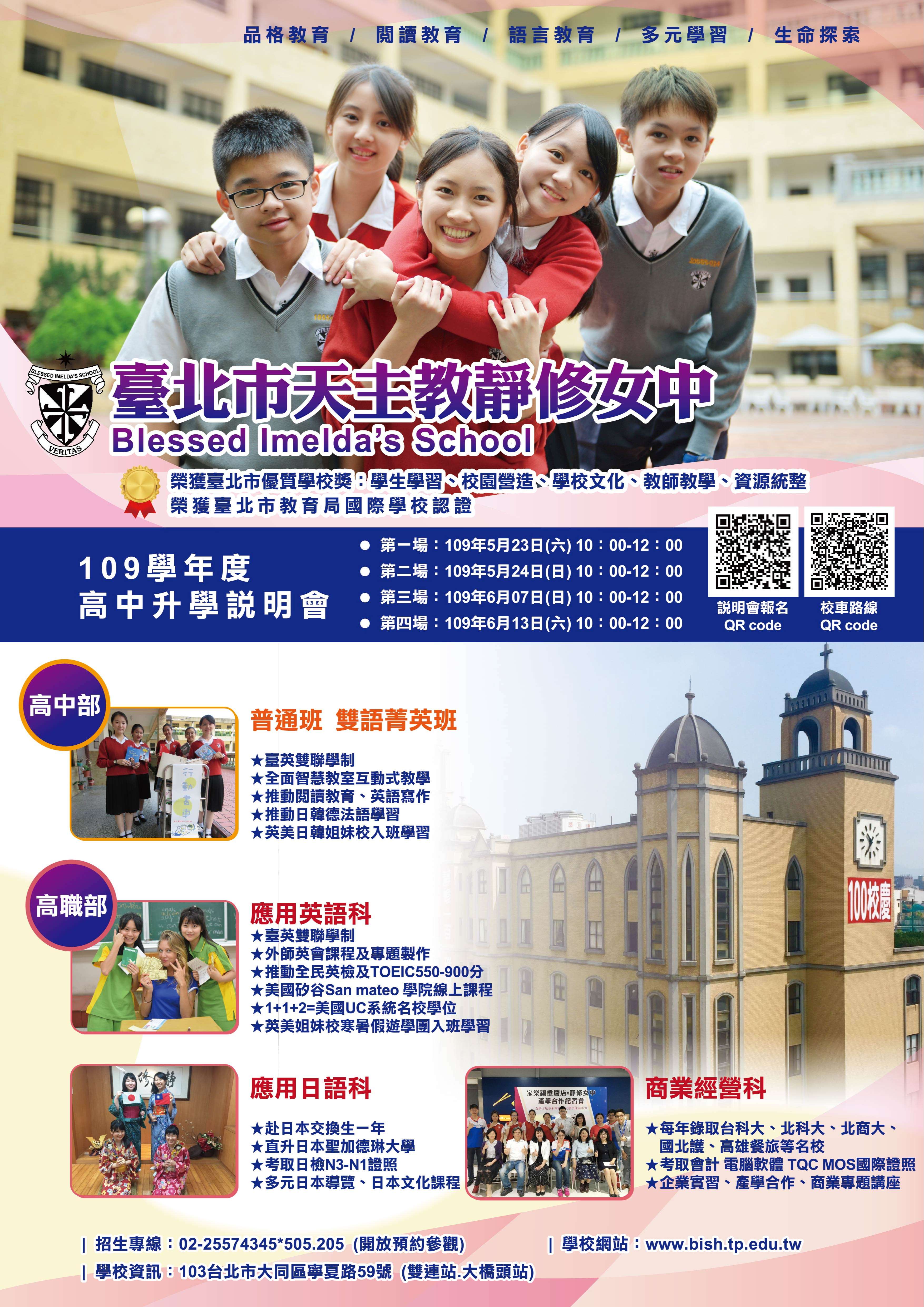 一、靜修高中為國際教育認證學校,推動美國、加拿大及日本交換生學習,設有臺英雙聯學制,並輔導國外升學美國、 英國、加拿大、西班牙及直升日本姊妹校大學。為使學生了解學校辦學特色,辦理109學年高中職新生入學說明會。