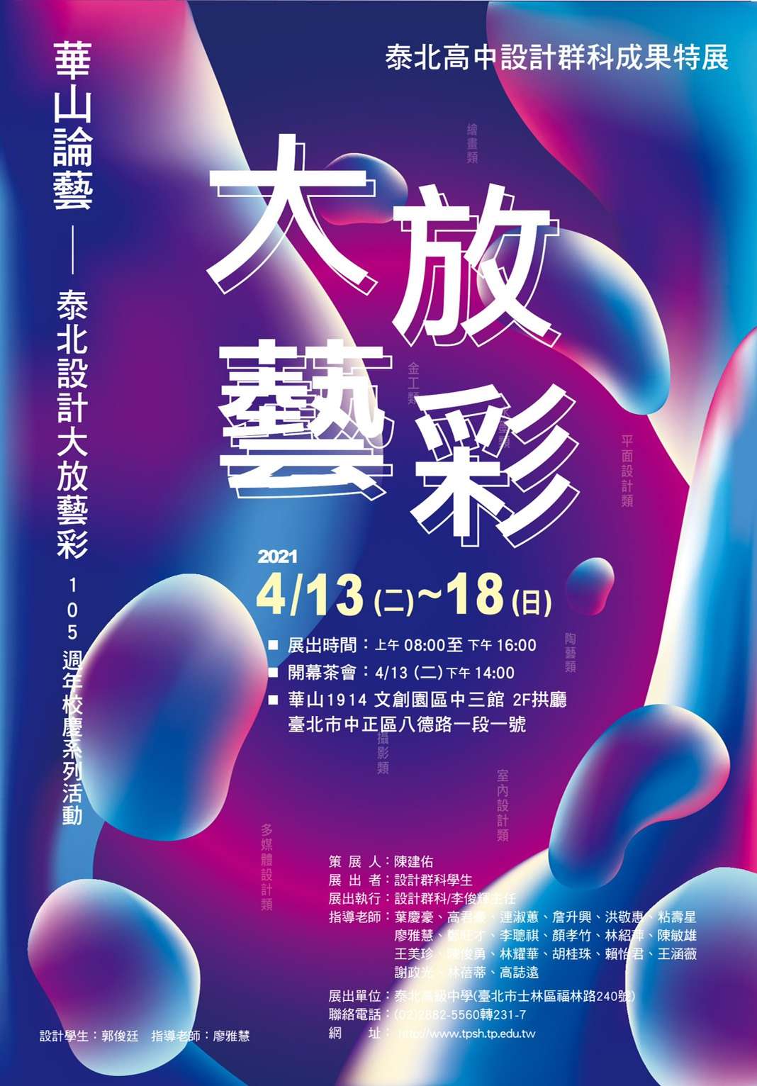 二、旨揭營隊分為應用日語科-日本文化體驗暨臺日交流會(110 年4月10日星期六)、設計群科-華山論藝-泰北設計大放藝彩設計群科成果特展暨精采體驗課程(110年4月13日至18日 星期二~日)、表演藝術科-華山1914文創園區烏梅劇院-表演藝術科科展暨第二屆畢業展「藝起玩」 (110年4月24日 至25日星期六至日),學生可針對自身興趣至附件的網址或掃描QR Code進行報名。