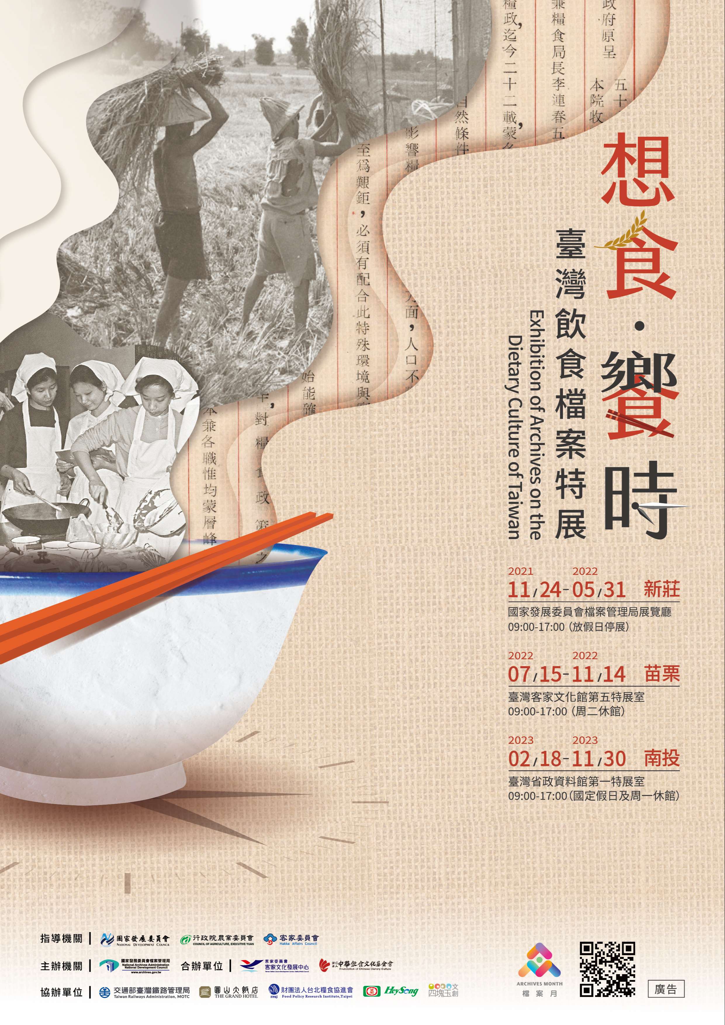 二、國發會檔管局為推廣國家檔案應用,研析重要政府政策以 回顧臺灣飲食發展,於本(110)年至112年與客家委員會客 家文化發展中心、財團法人中華飲食文化基金會合辦旨揭 特展。本特展各展次資訊如下: