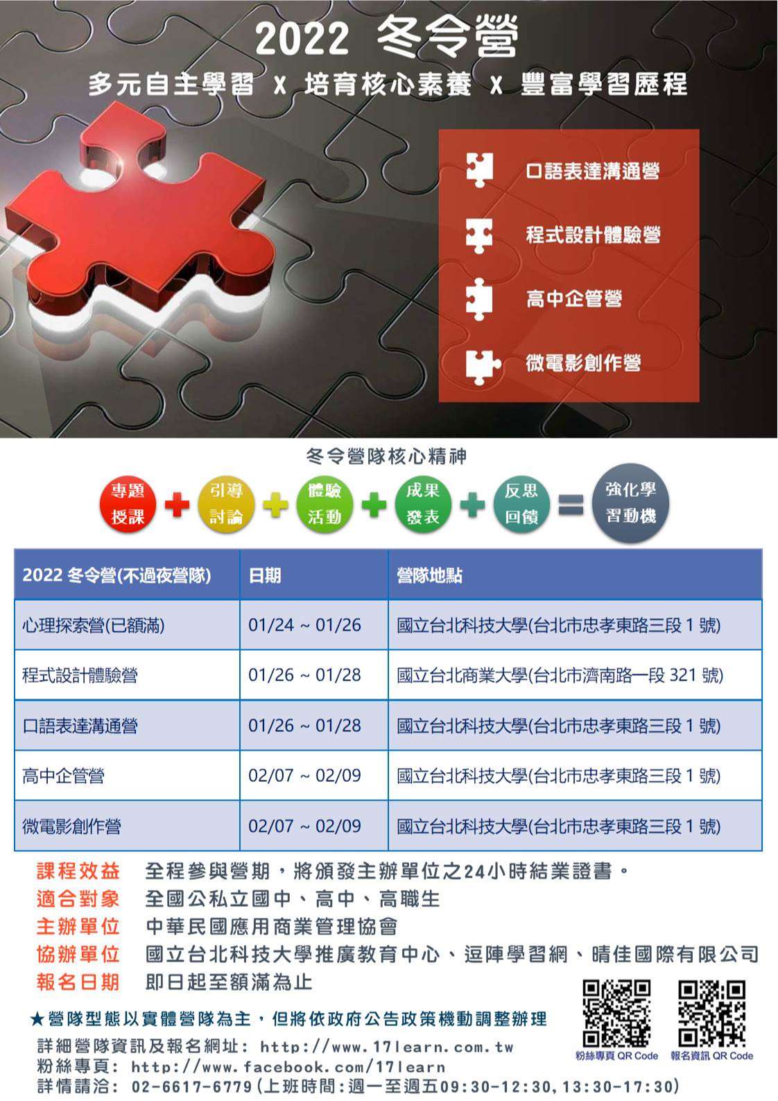 二、營隊名稱:「微電影創作營」、「高中企管營」、「口語表 達溝通營」、「程式設計體驗營」