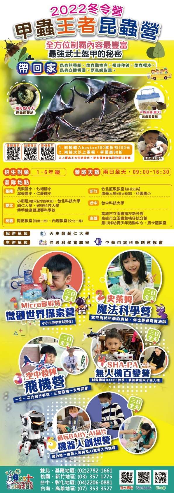 五、檢附倍思科學2022年寒假營隊DM電子檔。如有任何活動相關問題,歡迎洽詢倍思科學實驗室聯絡窗口:劉雲鳳老 師,聯絡電話:02-27821661#209,信箱: cscorp1661@gmail.com。