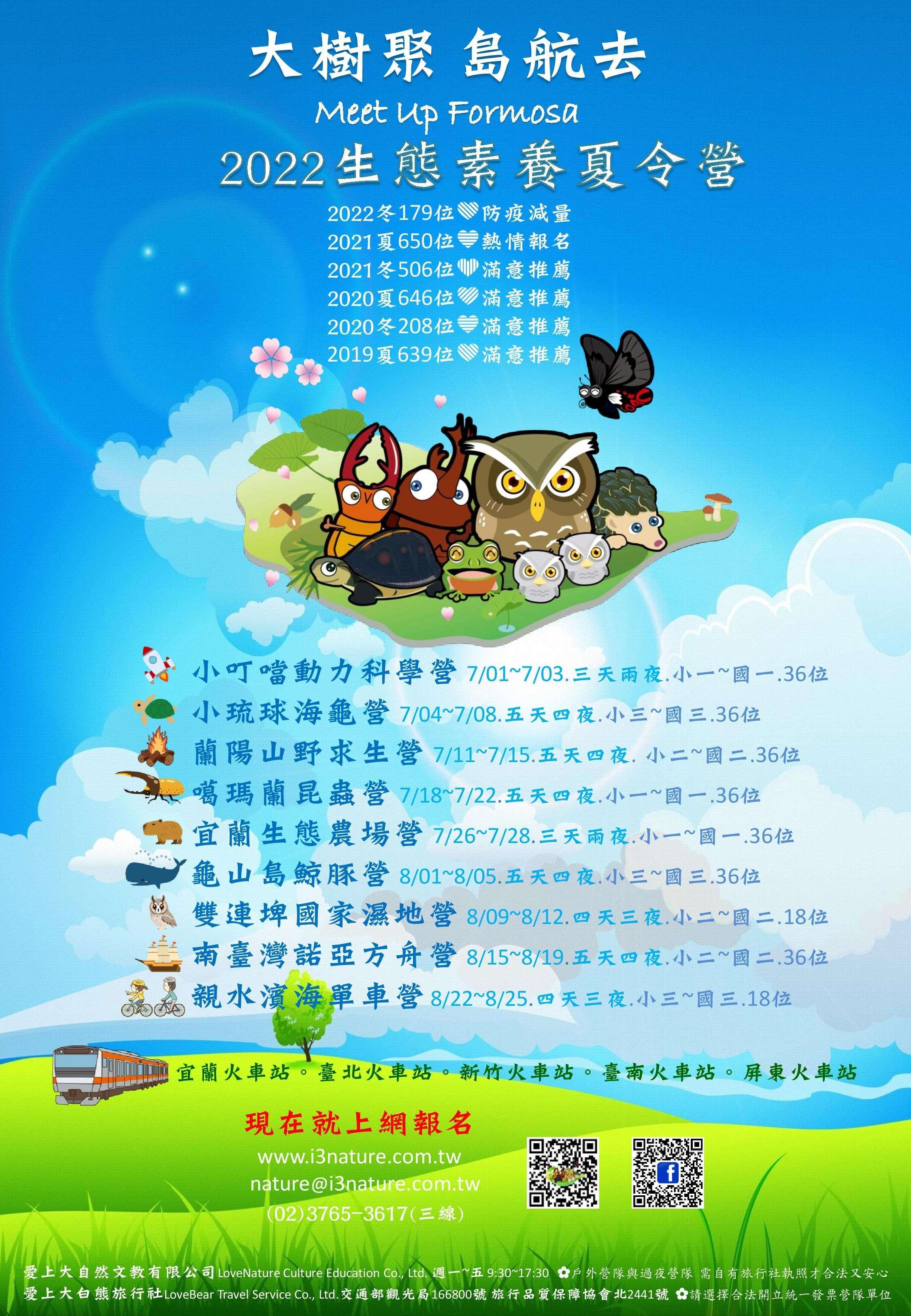 愛上大自然文教有限公司將於111年7月1日~8月25日,舉辦【大樹聚。島航去】2022生態素養夏令營共九個梯次。