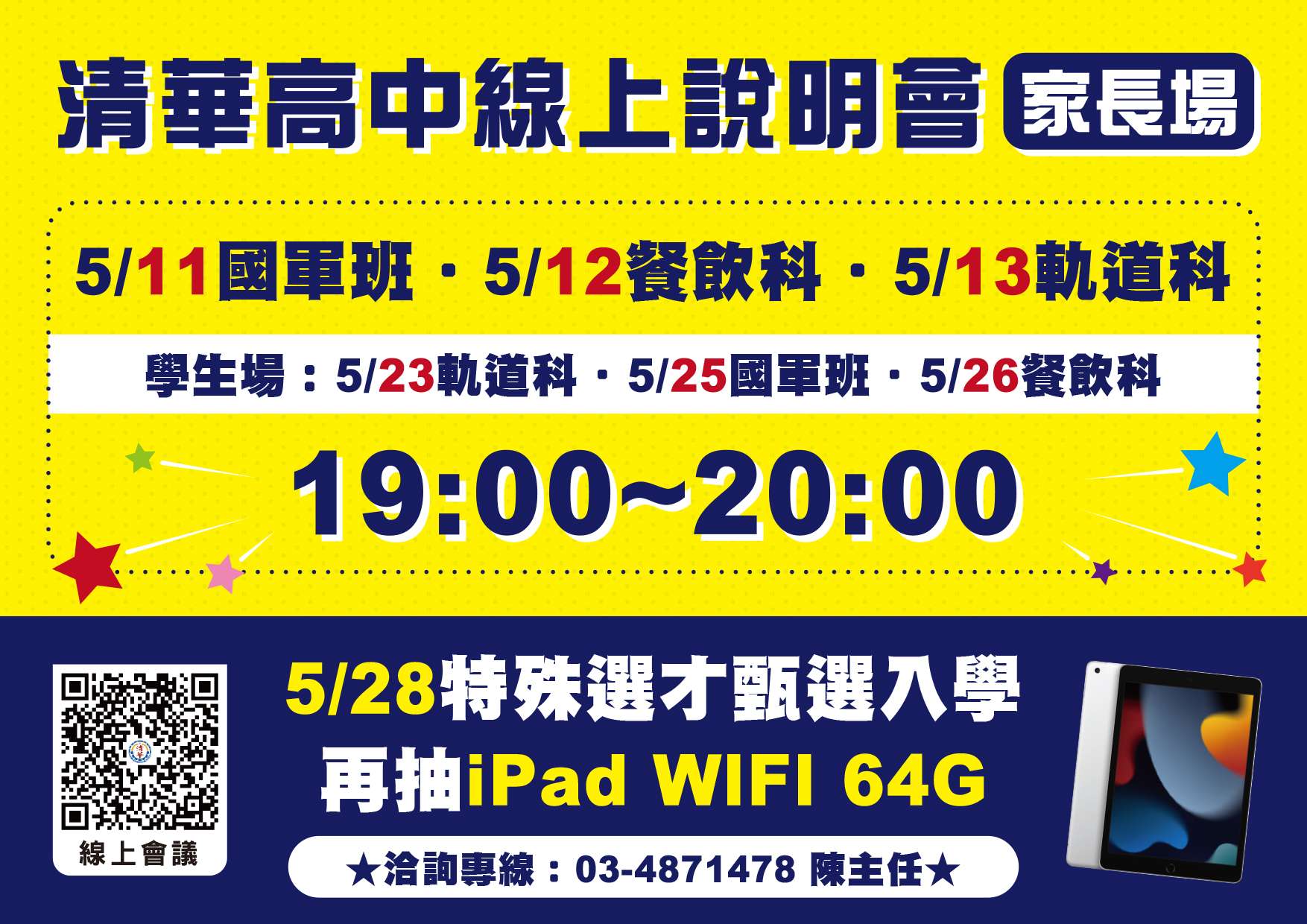 (二)餐飲科:05/12(四)晚間七點。