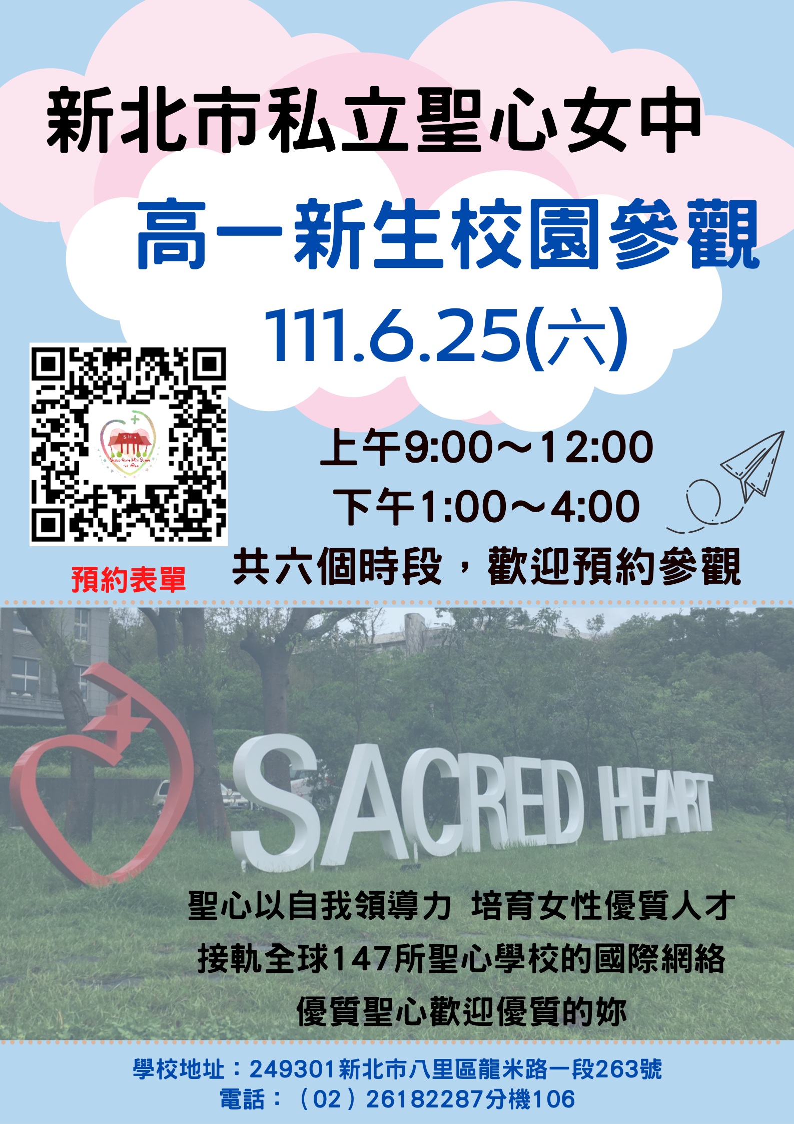 一、為協助國中女學生及家長認識該校,特辦理「高一新生校園參觀」。