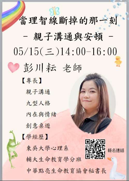 (二) 05/15(三)14:00-16:00,《當理智線斷掉的那一刻 親