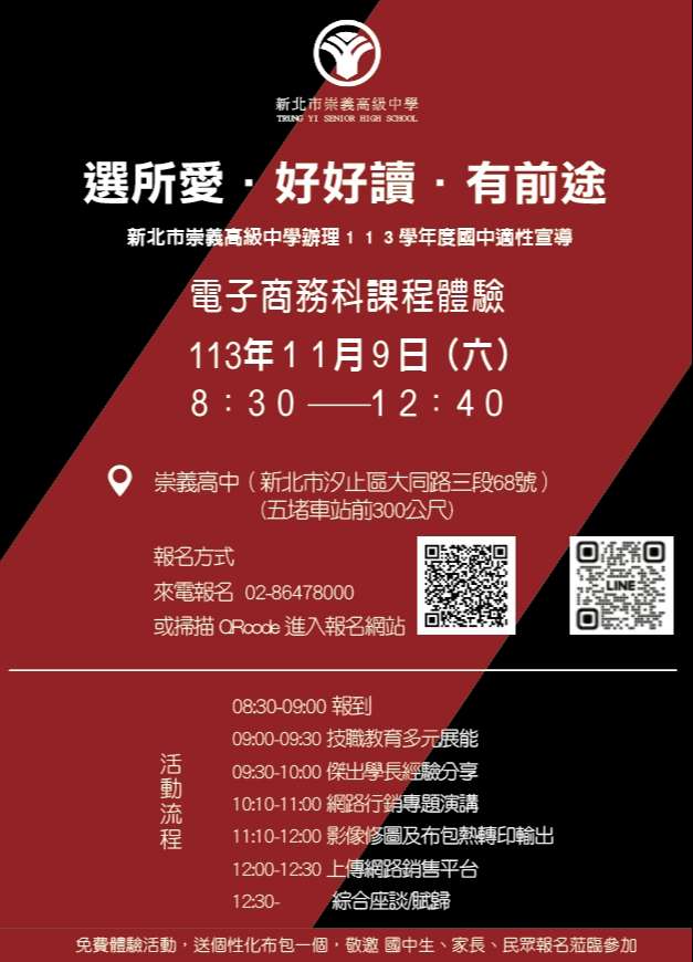二、活動內容:以適性發展及最新相關升學管道為主,邀請家 長進入學校參觀(體驗)導覽活動。