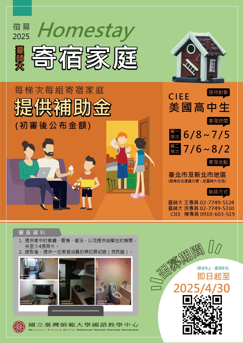 2025年「CIEE高中生短期華語文研習團計畫」台灣寄宿家庭徵選計畫: