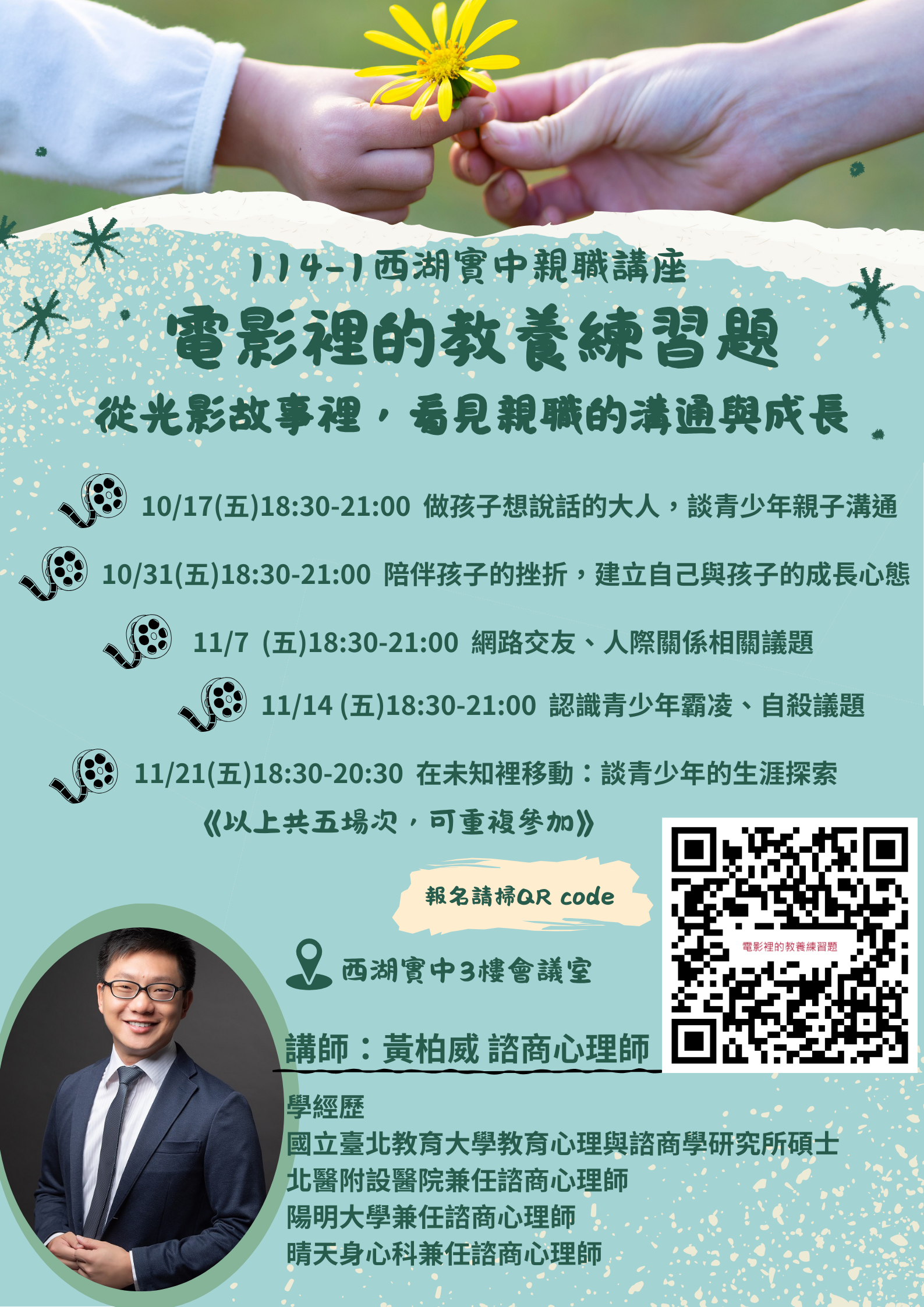 1、時間:114年10月17日(五)晚間6時30分至9時。