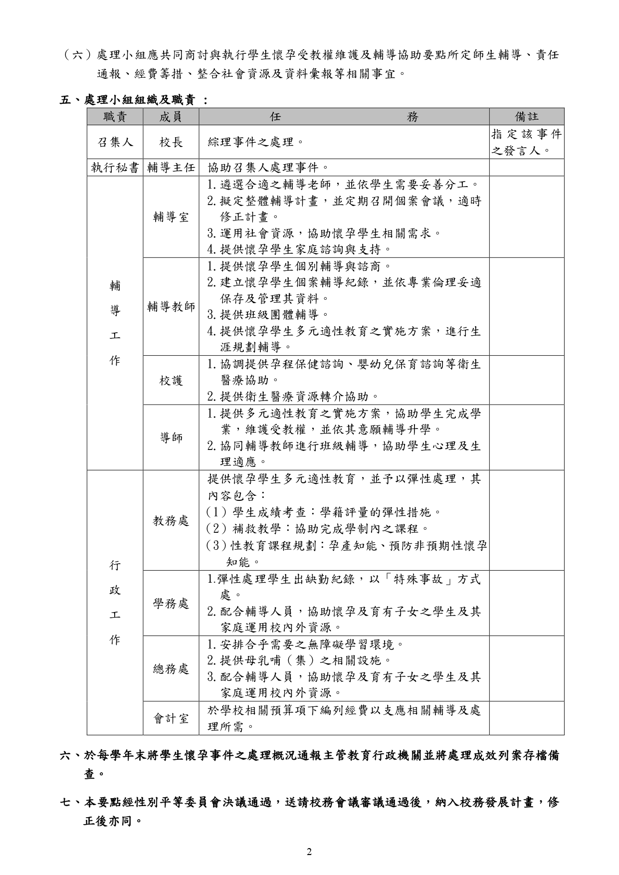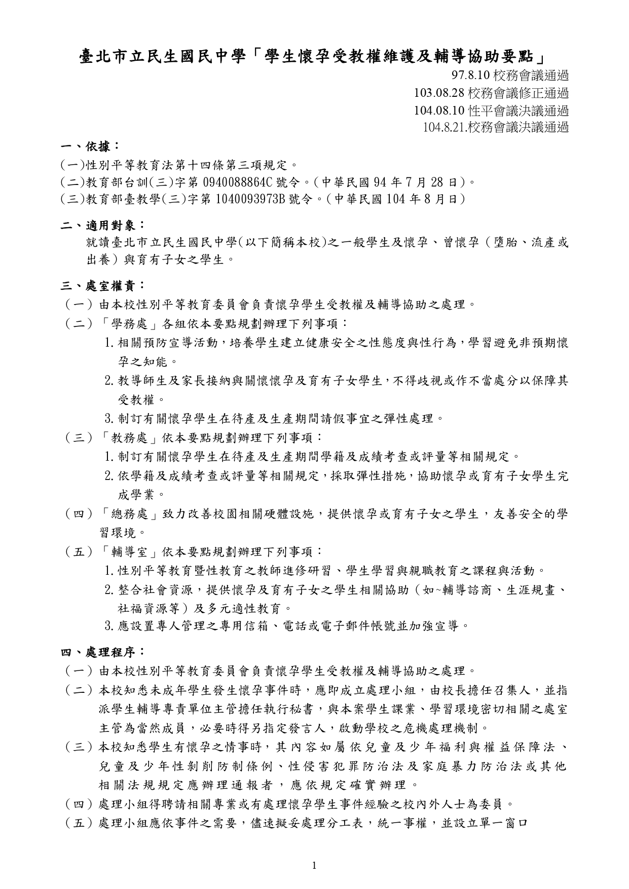 臺北市立民生國民中學「學生懷孕受教權維護及輔導協助要點」