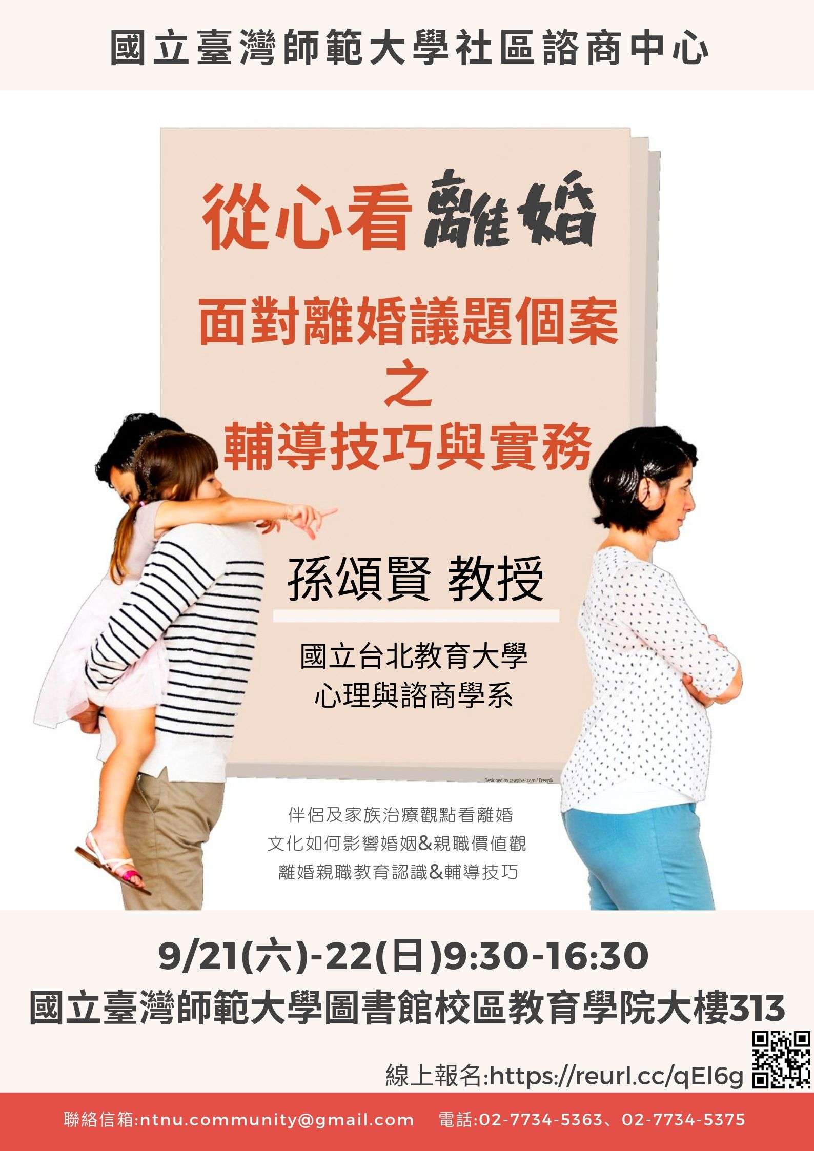 七、如有任何疑問,請洽詢本校社區諮商中心,電話:02- 77345363、5375、5369,電子信箱:ntnu. community@gmail.com。