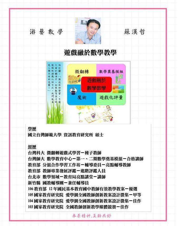 二、講座姓名:蘇漢哲老師。(學經歷如附件)