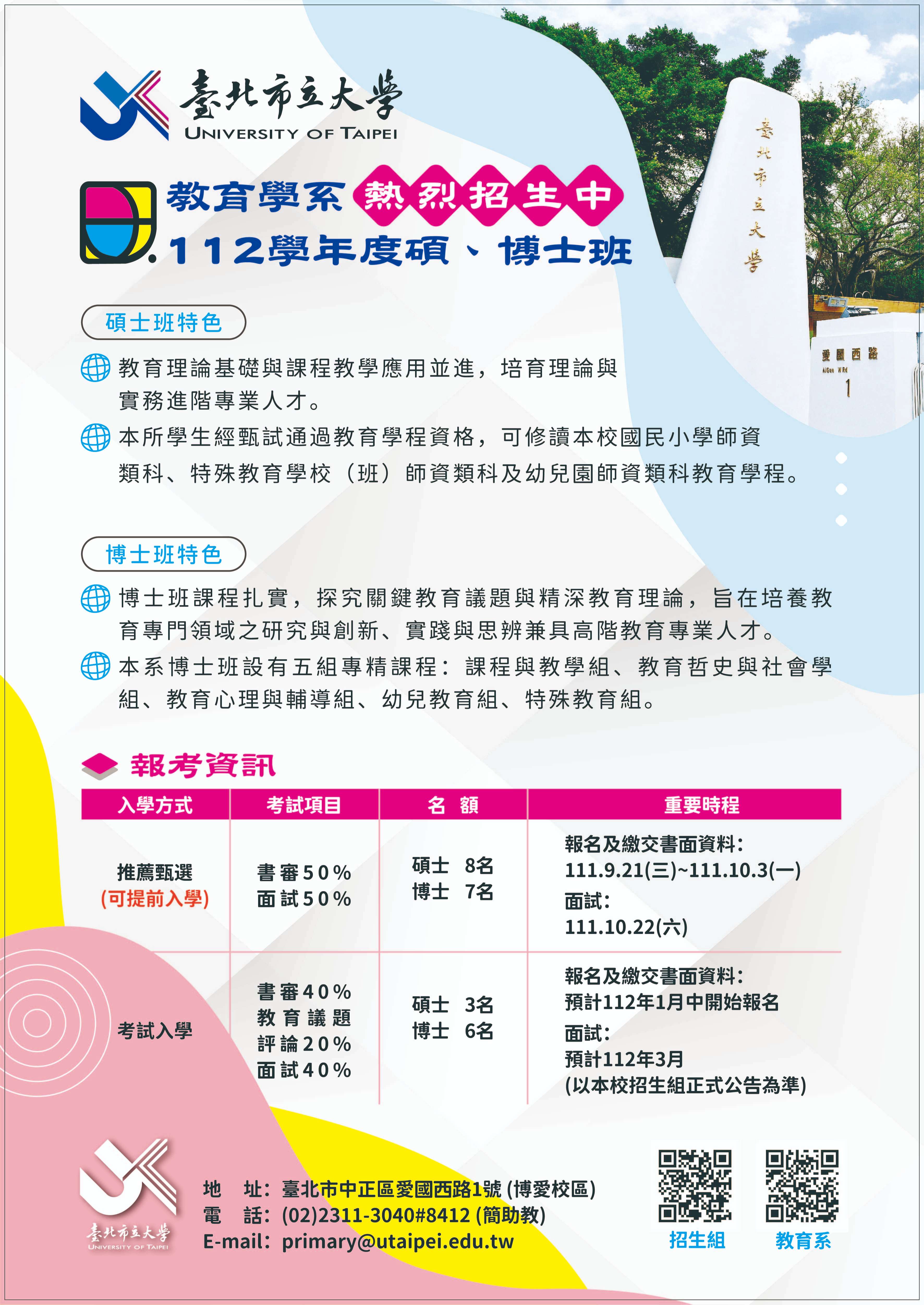 五、詳細招生資訊請參閱附件招生海報,或逕至臺北市立大學招生網站查詢。