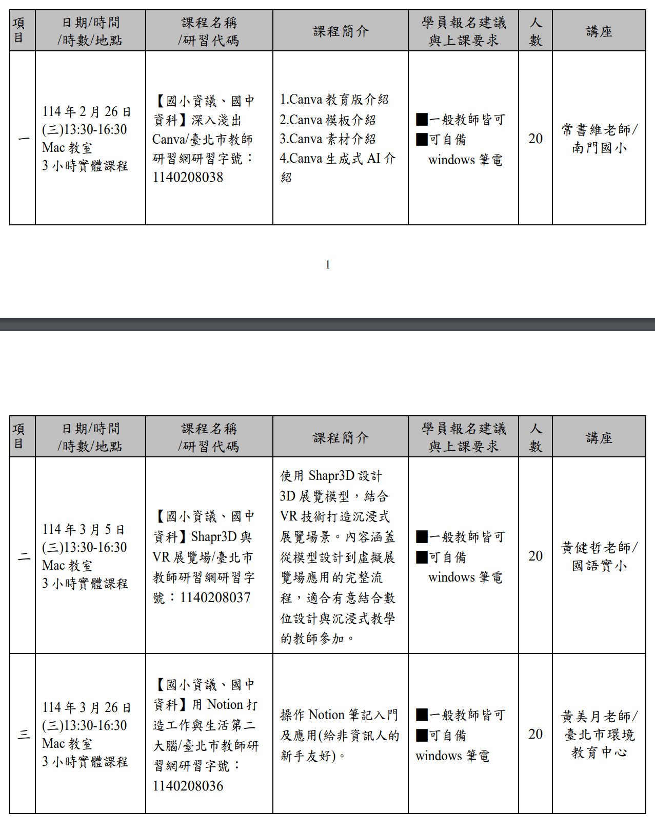 臺北市日新自造教育及科技中心 113 學年度科技教育種子教師 2-3 月份培訓計畫