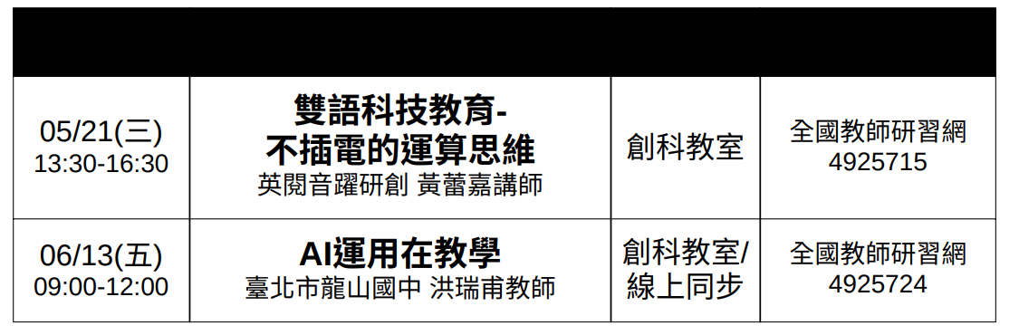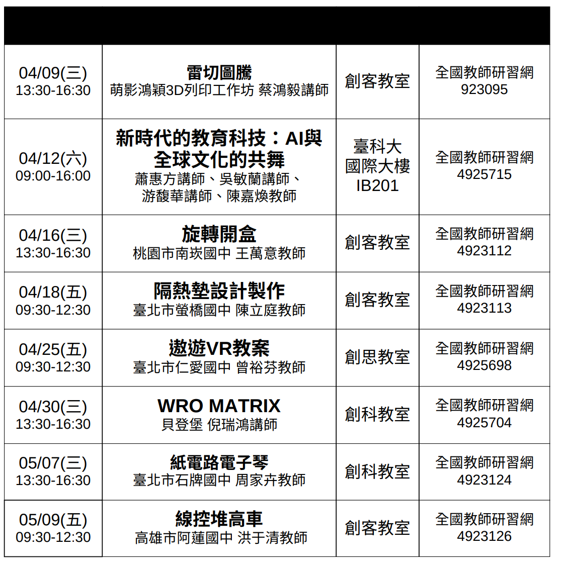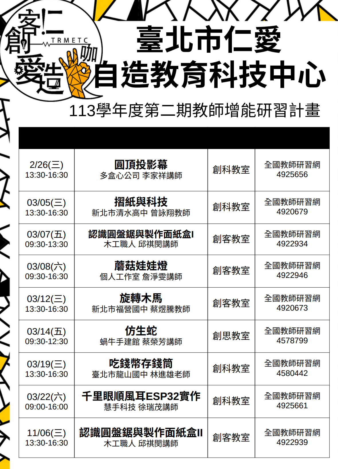 仁愛自造教育及科技中心辦理「113學年度第二期師資培訓計畫」教師研習課程,鼓勵本校教師報名並核予公假登記