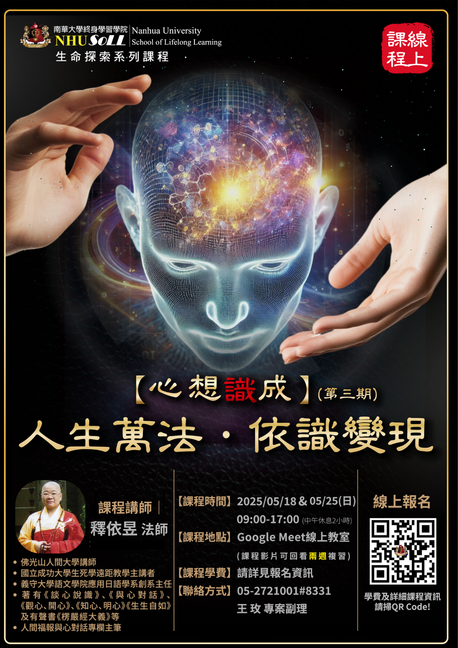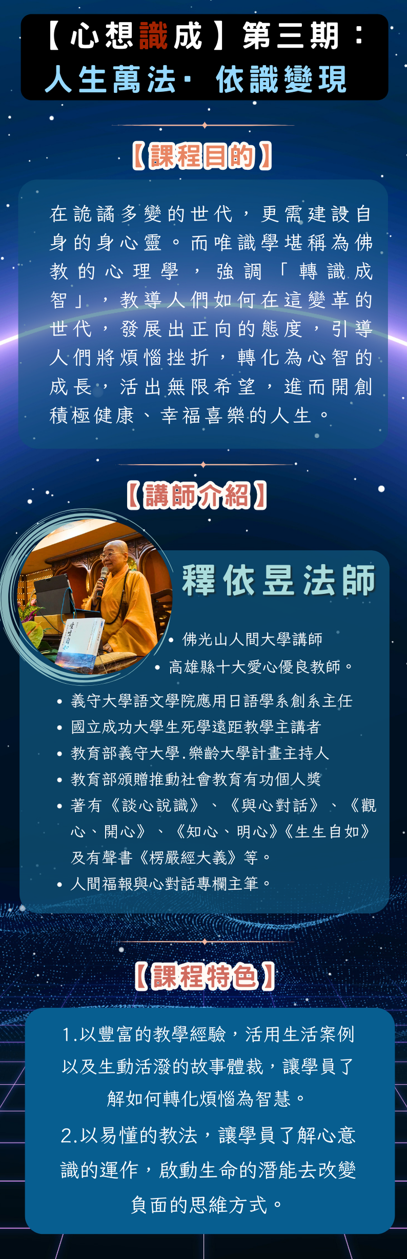 一、講師:佛光山人間大學講師-釋依昱博士。