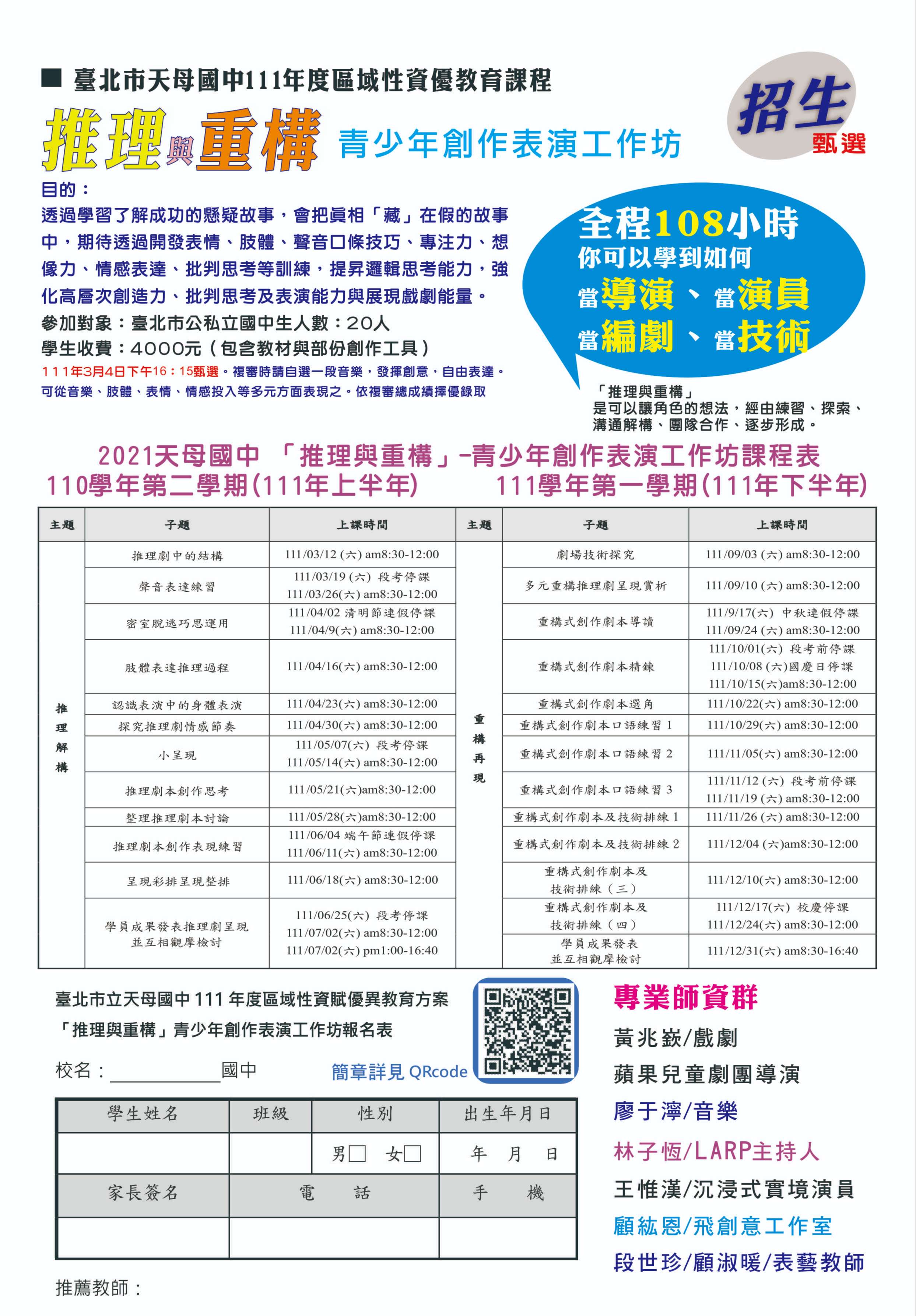 二、活動地點:臺北市立天母國中2樓表藝教室。
