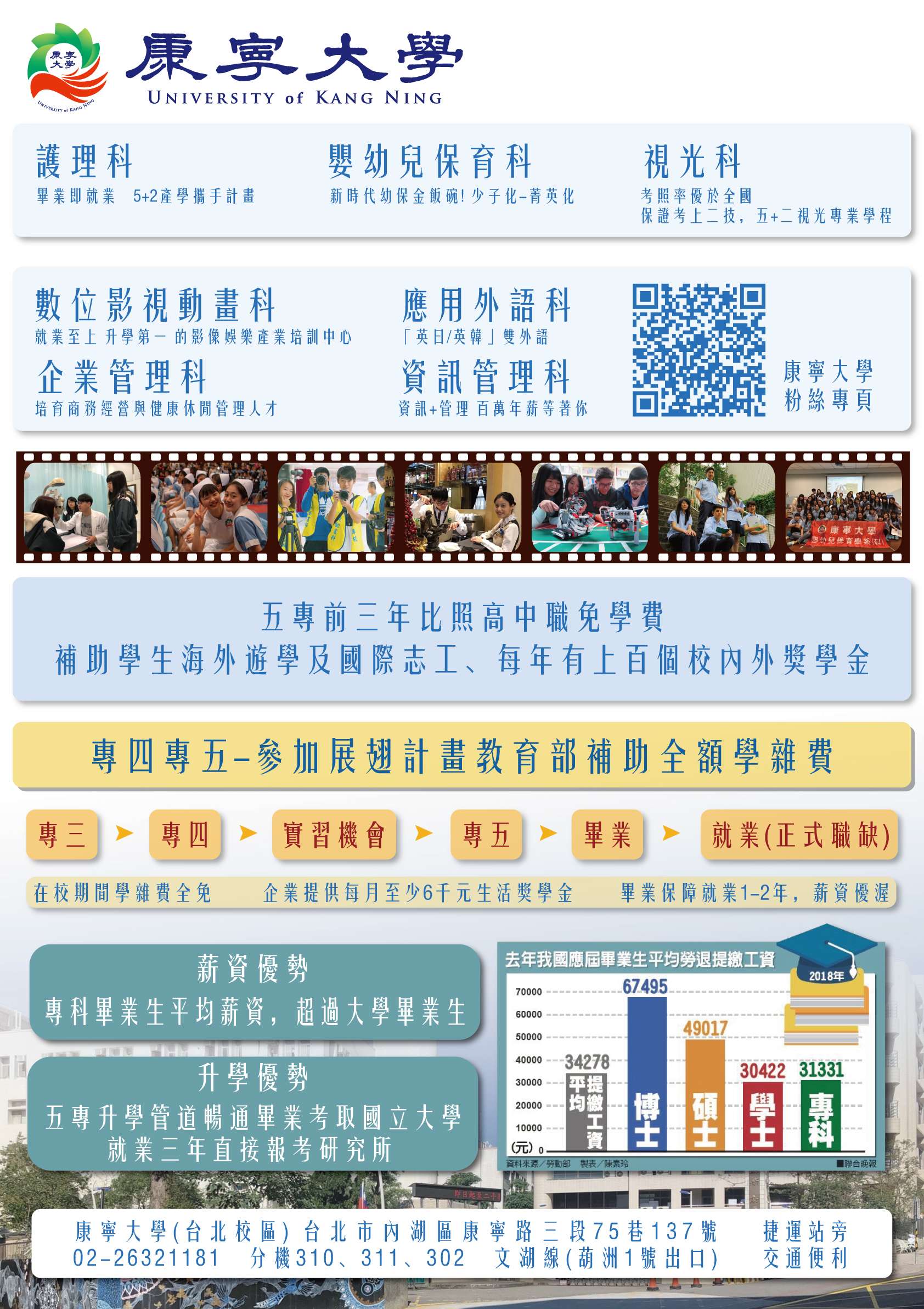 一、為使家長、同學及師長能更了解五專入學方式,康寧大學擬辦理五專學制入學說明會,並安排同學參加二堂專業課程體驗,詳情說明如下: