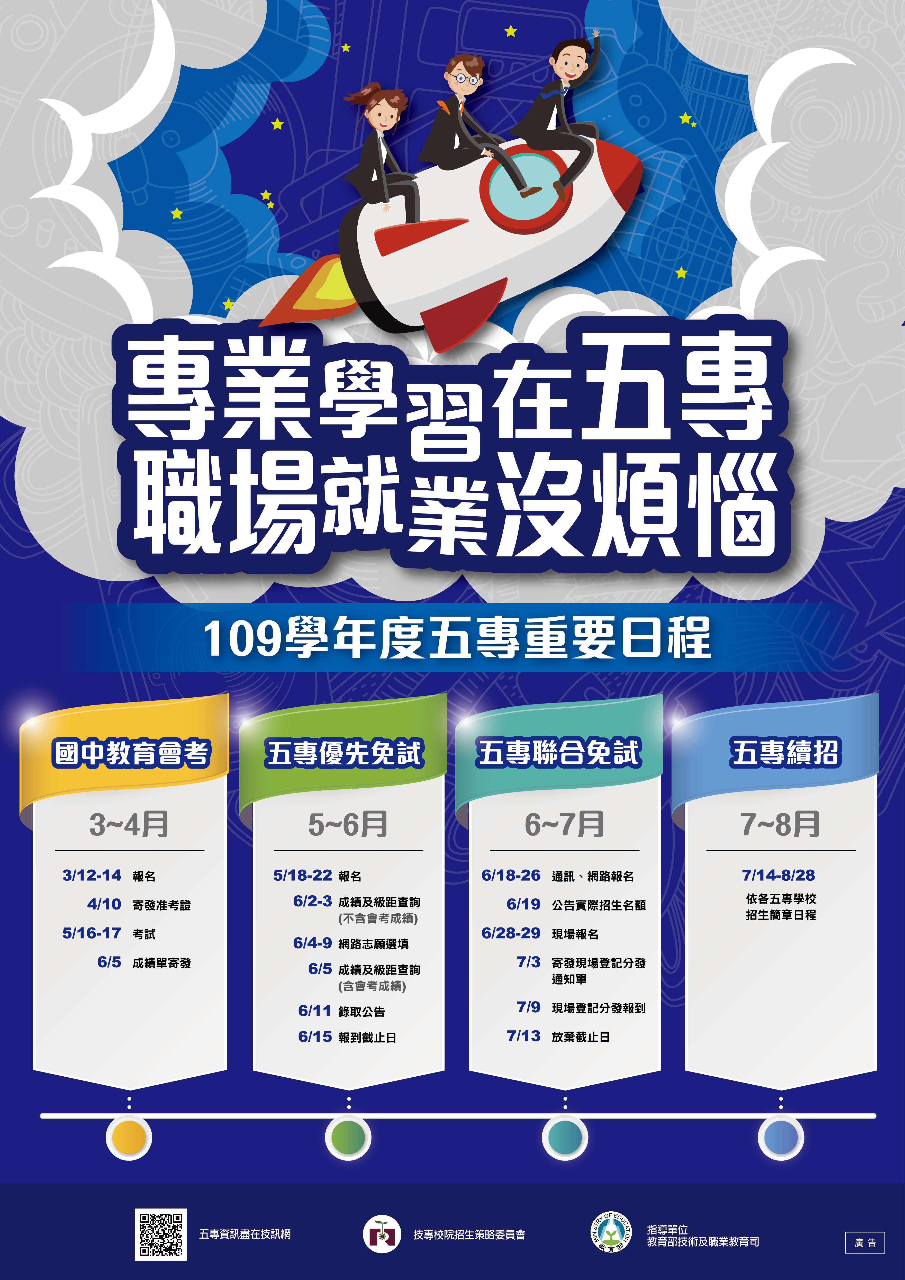 轉知109學年度五專多元入學進路指南及重要日程海報電子檔