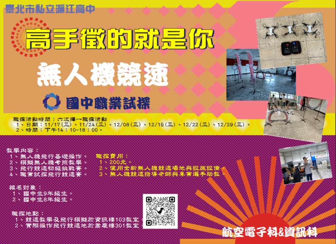 一、為鼓勵國中八、九年級學生學習無人機競速與初階設計, 發展多元智能,培養專業達人的自信心,特辦理旨揭活動。