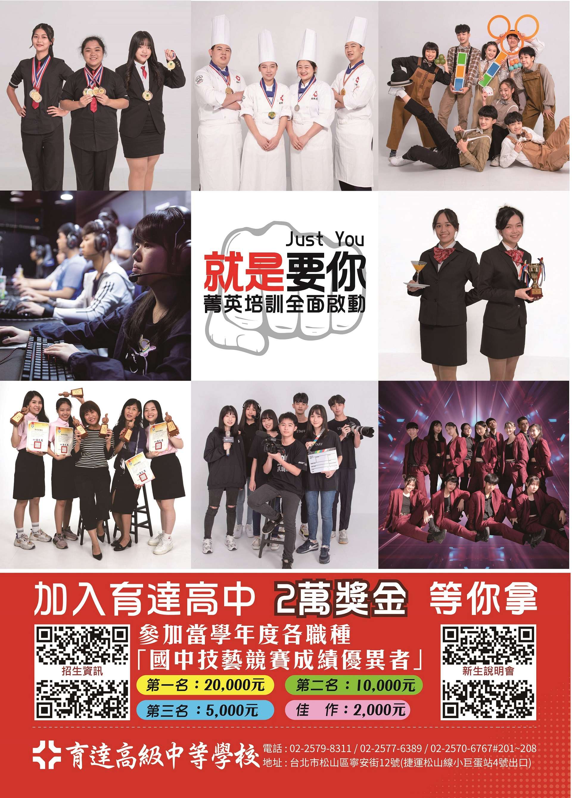 一、招生科別:觀光事業科、多媒體設計科、表演藝術科、餐飲管理科(含輪調式建教班)、時尚造型科。